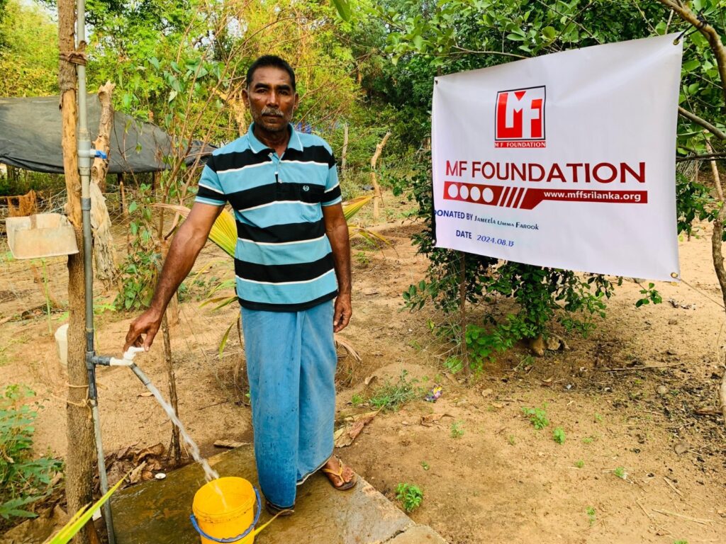 A poor father living below the poverty line who was facing difficulty in obtaining drinking water was provided with a drinking water facility with the participation of our organization members. This drinking water facility was provided by the Sri Lankan government through the National Water Resources and Drainage Board. Through this activity of MF Foundation, the people living in that family and their neighbors are benefiting from it. Such activities should be carried out more by our organization so that the suffering people can enjoy the benefits. Our foundation will continue to have a good intention.